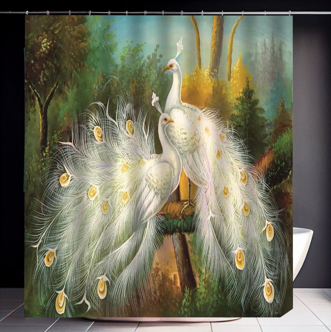 Peacock Shower Curtain White Peacocks Bathroom Curtains Waterproof